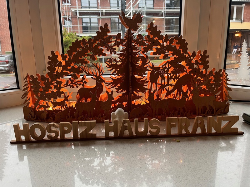 Doch nicht nur das Team steht hinter dieser besonderen Kooperation, sondern auch die Elternschaft. Anfangs war es für einige Eltern doch sehrt befremdlich, dass man den Kindern sehr wohl erklärt, für welche Menschen das Gebastelte eigentlich ist. "Kinder und Tod- das passt doch nicht. Sterben macht Angst!" oder auch der Gedanke, dass man Kinder nicht mit dem Tod belasten sollte, standen im Raum. Kinder allerdings gehen mit dem Thema Tod viel unbedarfter als Erwachsene um. Sie haben die kindliche Leichtigkeit und Neugier bezüglich dieses Thema, die uns Erwachsenen oft verloren gegangen ist. Verstehen Eltern das, sind sie plötzlich viel entspannter und finden die Idee sogar gut, dass die Einrichtung mit den Kindern über solche Themen redet. Manche Mütter, die selbst einen pflegerischen Beruf haben, unterstützen uns sogar explizit. So begleitete Nurcan Gözlük Katja Marra, zu dem Termin der Übergabe und lernte das "Franz- Haus" und seine Magie selbst kennen. Frau Gözlük war begeistert und beeindruckt von der Wärme und Herzlichkeit, die einem entgegengebracht wird, wenn man das Haus betritt. Beim letzten Besuch wurden Frau Gözlük und Frau Marra von Mila, einer Tochter einer Mitarbeiterin, empfangen, die im Wohnzimmer des Hospizes an der Spielküche Traubensaft und Gemüsesuppe kochte. Auch das ist ein Beispiel dafür, dass Kinder definitiv im "Franzhaus" willkommen sind. Kindgerechte Bücher, eine Spielküche und Malmaterial laden zum Verweilen ein.