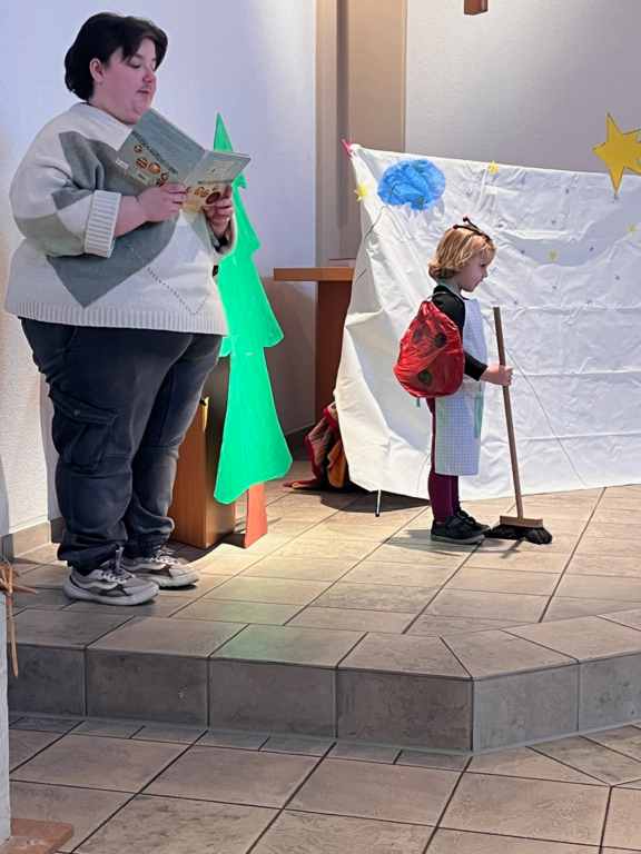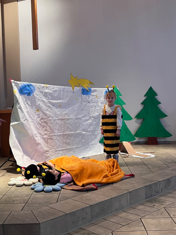 Wie schön war es doch, mit Familien und Gemeindegliedern den Advent Gottesdienst zu feiern. "Die kleine Hummel Bommel" feierte in diesem Jahr Weihnachten und die Kinder überzeugten mit schauspielerischem Talent. Nach dem Gottesdienst gab es noch Kaffee für die Erwachsenen und Schorle für die Kids und der Duft von frischgebackenen Waffeln zog durch das gesamte Gemeindezentrum. Alle Besucher konnten den kleinen Basar besuchen. Hier gilt der besondere Dank den Eltern, denn diese haben sich mehrmals zum gemeinsamen Basteln getroffen. Türkränze, Anhänger, Buchseitenhalter und vieles mehr konnte erworben werden. Der Gesamterlös geht wie immer an den Förderverein des Familienzentrums.